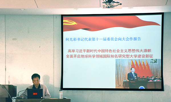 陈飞指出,学校未来发展的宏伟蓝图已经绘就,安博官方网站“双一流”建设已经启动,全院教职工都要以习近平新时代中国特色社会主义思想为指导,把全面贯彻落实“十九大”精神和学校第十二次党代会精神放在首要位置,切实把思想和认识统一到学校第十二次党代会精神上来,切实把智慧和力量凝聚到实现第十二次党代会提出的奋斗目标任务上来,在学校新一届党委的坚强领导下,以全面加强党的建设为统领,全面落实立德树人根本任务,进一步解放思想、深化综合改革、追求学术卓越,进一步提升教育教学、科学研究、社会服务水平,努力开创各项工作新局面,为把学校建设成为地球科学领域国际知名研究型大学生作出新的更大的贡献。