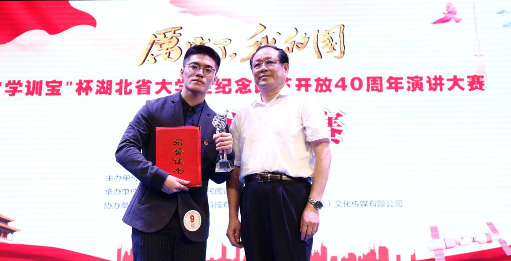 6月22日,以“厉害了我的国”为主题的“学训宝杯”湖北省大学生纪念改革开放40周年演讲大赛总决赛举行,我院地质工程(岩土钻掘方向)专业大三学生罗云瀚获特等奖。