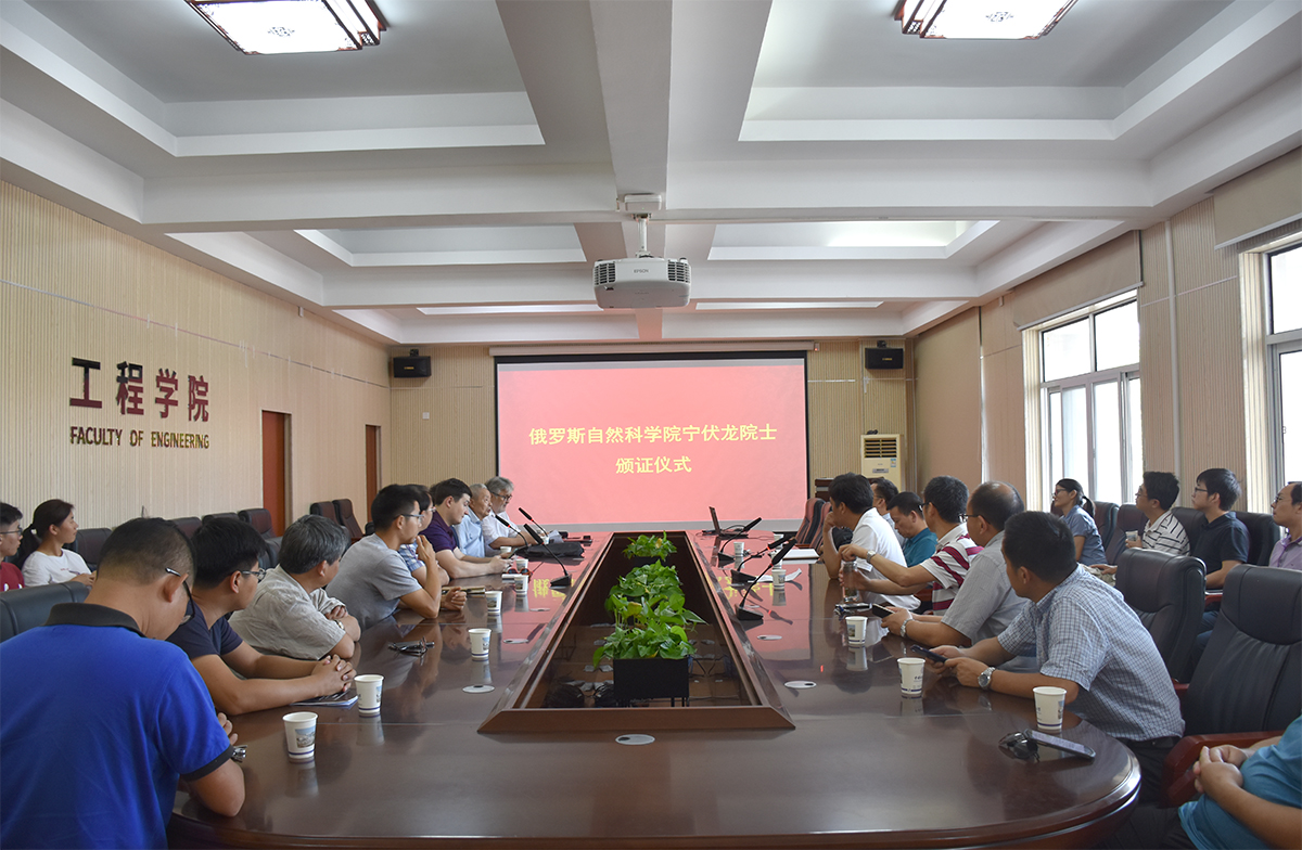 安博官方网站党委书记陈飞主持本次仪式。首先,院长焦玉勇教授对宁伏龙教授的主要学术成就做了简单介绍。之后,契霍特金教授向大家介绍了俄罗斯自然科学院基本情况以及外籍院士的遴选过程,并代表俄罗斯自然科学院为宁伏龙教授颁发院士荣誉证明、院士证和徽章。随后,宁伏龙教授发表荣获俄罗斯外籍院士感言,表示今后会更加致力于本职工作,积极推动与俄罗斯等国家高校、研究院所的国际合作,为学校“双一流”建设作出更多贡献。最后,王林清副书记发表讲话,对宁伏龙教授获此荣誉表示祝贺,并对宁伏龙教授及安博官方网站今后的工作提出了更高的要求。