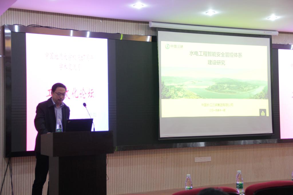 裴金勇的报告题目为“水电工程施工智能安全管理创新”,介绍了中国长江三峡集团公司。以白鹤滩水电站为背景,从“人—物—环—管”四方面阐述了水电工程建设的主要特性指标、流域风险管控体系、技术难点等。同时还介绍了三峡集团公司安全信息化建设现状,包含建筑市场管理信息系统、安全培训工具箱、人员与设备定位及轨迹跟踪系统、安全隐患排查微信系统,在安全管控上取得一定成效。针对水电工程智能安全管理问题,裴金勇分享了安全生产数据的共享应用,结合智能识别、数据挖据和危险预警等技术,通过分析判断建设过程中人员不安全行为、设备设施不安全状态及环境不安全因素,阐明工程安全“人—物—环—管”全员、全过程及全要素智能安全保障体系的建设与发展。