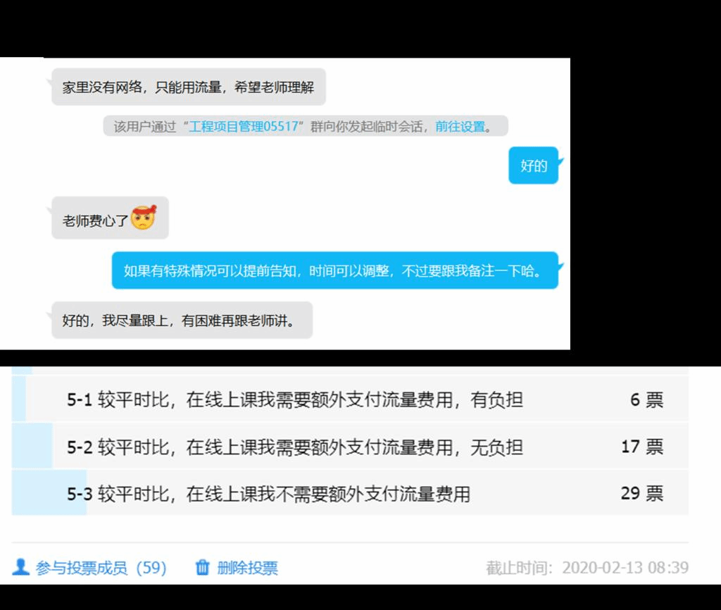 在这场举国上下的“战疫”中,安全工程系的教师克服软硬件的重重困难,通过屏幕向广大学子传授知识、传递温暖,用实际行动诠释了教师的责任与担当,分散在全国各地的学子也克服没有书本、网络不佳等困难,居家隔离同时,认真完成学习任务。