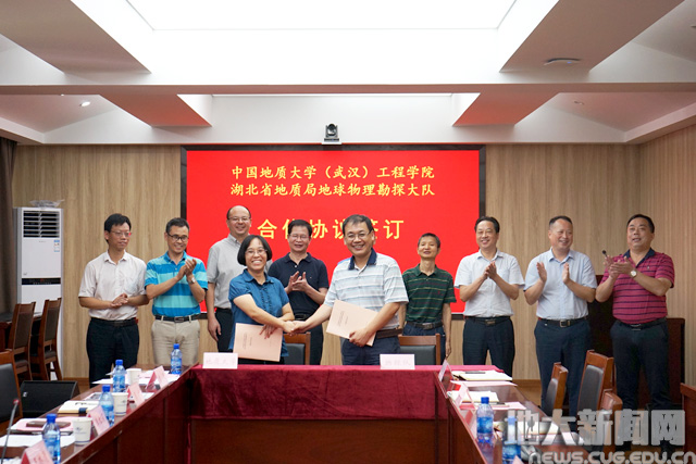 (通讯员张鹏 曾聪)8月31日,为落实学校与湖北省地质局战略合作协议和双方推进深化合作座谈会要求,我院与湖北省地质局地球物理勘探大队(以下简称“湖北物探队”)框架合作协议签订暨产学研基地揭牌仪式在湖北物探队举行。湖北省地质局总工程师熊保成,湖北物探队党委书记、队长梅焱祥,校党委副书记王林清,安博官方网站党委书记李红丽等参加签约仪式。湖北物探队党委副书记郑乐平主持会议。