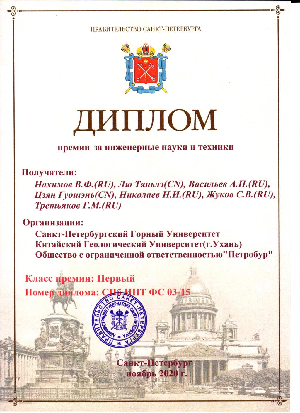 “圣彼得堡工程科技奖”是俄罗斯圣彼得堡市政府和总督府于1999年11月设立,为表彰圣彼得堡市(俄罗斯联邦直辖市)科技和工程人员为俄罗斯乃至全球在工程领域所做出的突出贡献,每两年评选一次。(文字编辑:王灿)