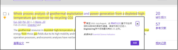 (通讯员:黄静)根据2021年11月基本科学指标数据库(Essential Science Indicators,简称ESI)最新数据显示,安博官方网站勘察与基础工程系崔国栋副教授于2021年在国际工程技术顶级期刊Energy上发表的学术论文“Whole process analysis of geothermal exploitation and power generation from a depleted high-temperature gas reservoir by recycling CO2”入选ESI高被引论文(Highly Cited Paper)。该论文第一作者兼通讯作者为崔国栋副教授,中国地质大学(武汉)安博官方网站为第一署名单位。
