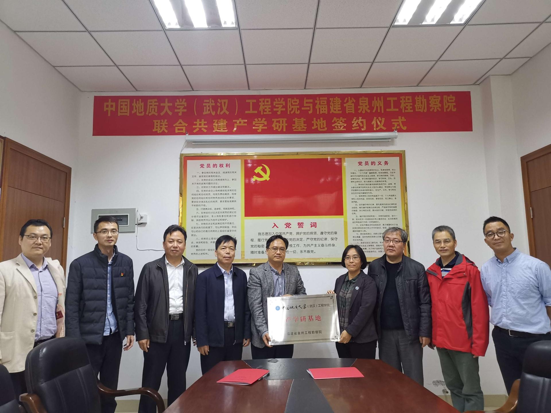 签约之前,双方分别介绍了单位的基本情况以及各自的优势和需求,并就合作内容展开具体交流,气氛热烈,成果丰硕。随后,李红丽书记与泉州工程勘察院院长曾文杰代表双方在大家共同见证下签订了合作协议并授牌。