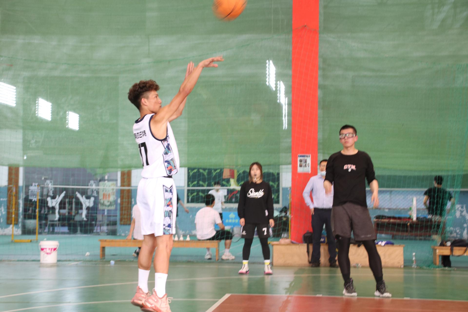 最后,师生篮球赛正式开始。主持人介绍首发队员,他们分别是教师队的陈胜、郑罗斌、高晓东、程旬和张伟,学生队的杨明、代钊恺、阿依巴特、王俊超以及熊秋阳。随即,双方进行了紧张激烈的角逐,最终学生篮球队以70:68的比分获胜。
