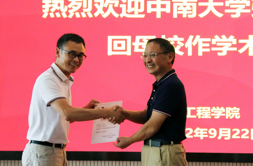 窦斌副院长为张绍和教授颁发工程文化论坛特邀报告证书