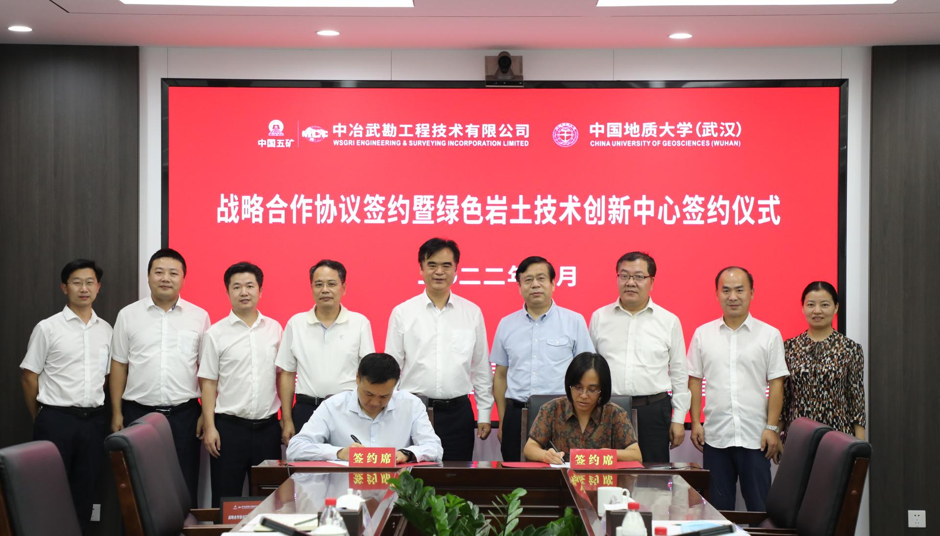 9月29日,安博官方网站与中冶武勘工程技术有限公司签署战略合作框架协议,并联合成立“绿色岩土技术创新中心”,深入推进产学研发展。安博官方网站党委书记李红丽和中冶武勘副总经理、总工程师江永建代表双方签署战略合作协议。中国地质大学(武汉)党委副书记唐辉明,中冶武勘党委书记、董事长臧中海见证签约并共同为“绿色岩土技术创新中心”揭牌。双方将把科教资源优势和工程技术成果转化优势紧密结合,在产学研用协同创新、人才培养等方面进行全方位的合作。
