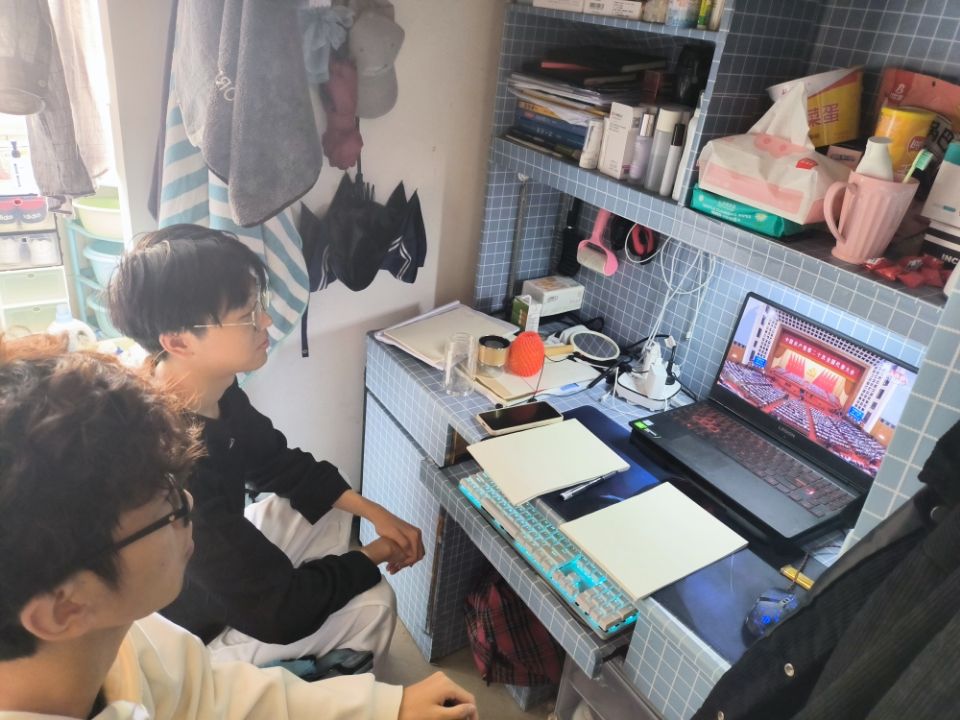 学生在宿舍通过电脑进行收看