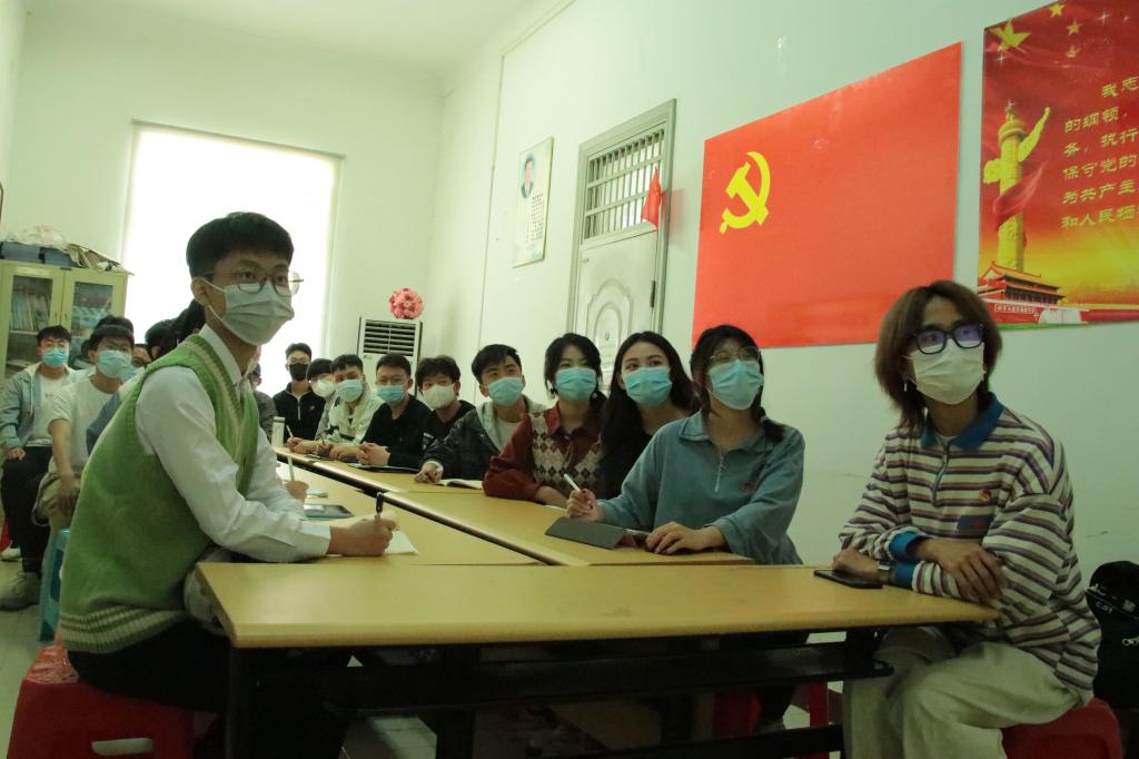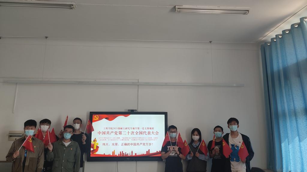 2021级硕士研究生地空系第一党支部在会议室集中收看