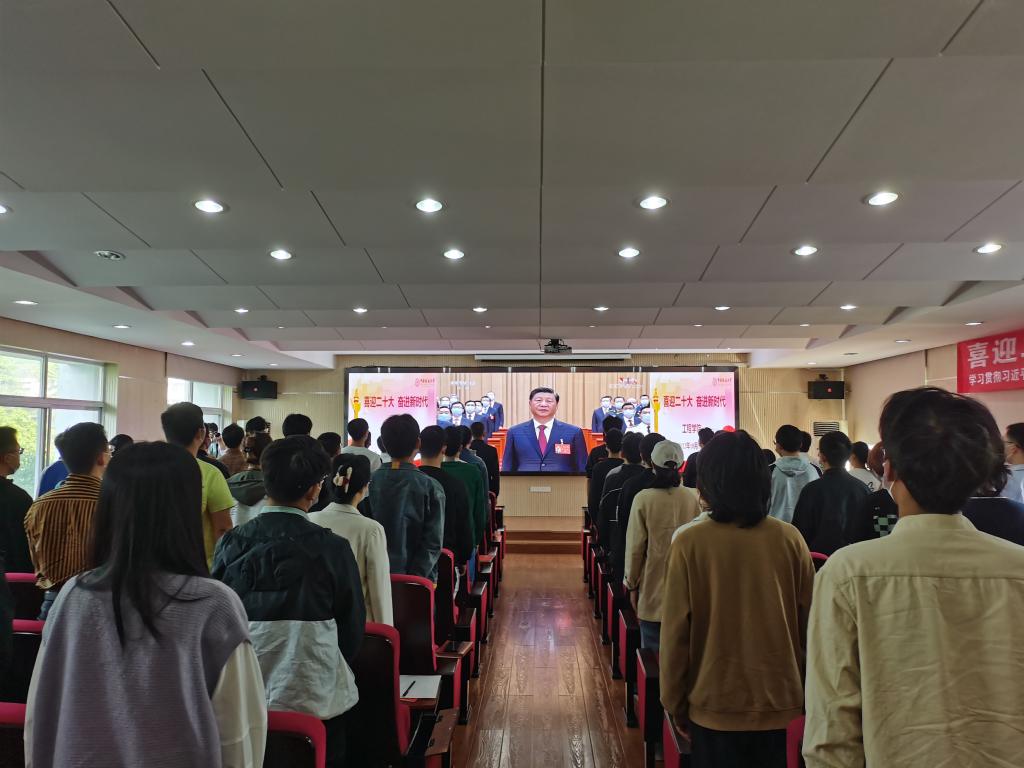 安博官方网站党委书记李红丽,院长焦玉勇,副院长王亮清、倪晓阳、章广成,院党委副书记高晓东,各教工党支部书记、主任,院直机关全体工作人员及辅导员在工程楼315集中收看,各系(中心)教工党支部在各系会议室集中收看,学生党支部、团支部代表在工程楼418报告厅集中收看,窦斌副院长及学院代表等在东区教学综合楼A0113集中收看,其他师生在各自宿舍、工作室、会议室等通过电脑、手机收听收看。