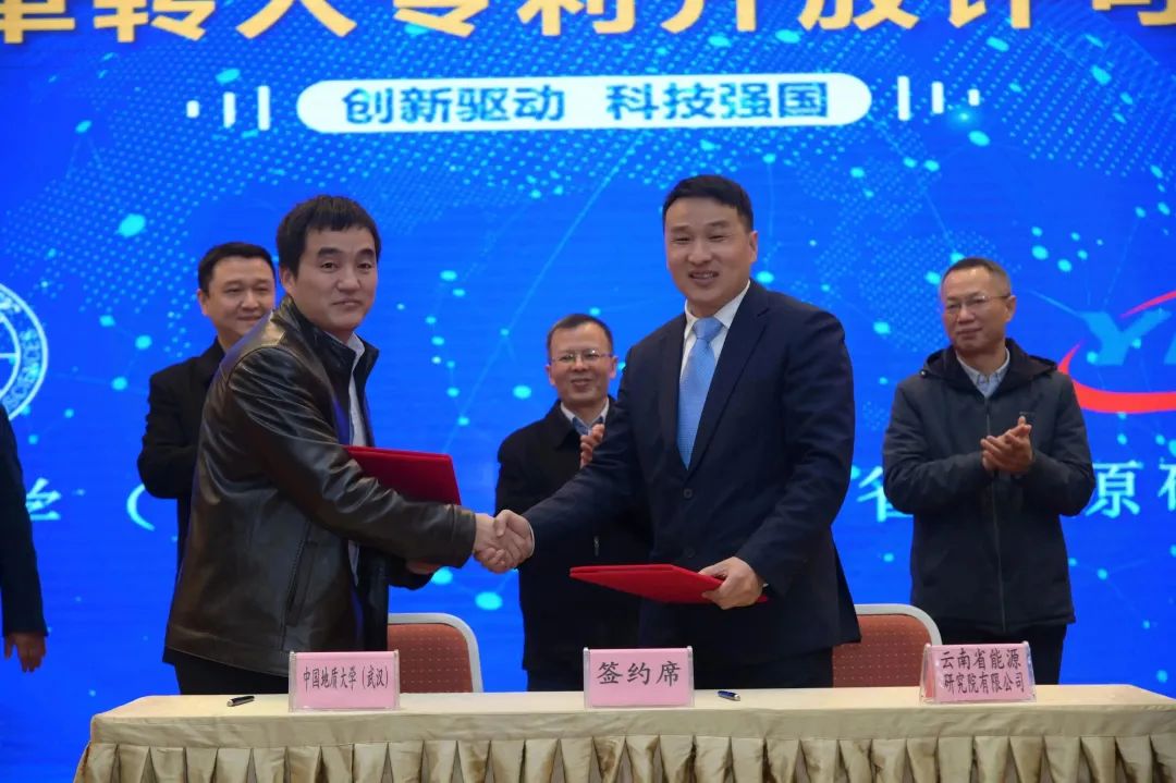 云南省能源研究院有限公司执行董事、总经理刘士诚和蔡记华教授代表双方在签约仪式上签字。中国地质大学(武汉)科学技术发展院常务副院长胡祥云详细介绍了学校在知识产权及成果转移转化方面的工作情况,以及达成此次合作的3项发明专利人蔡记华、杨现禹研究团队及其发明成果。云南省能源研究院有限公司执行董事、总经理刘士诚介绍了公司整体情况,该公司是云南省能源投资集团有限公司以加快推进云南能源产业发展为出发点,结合云南打好“绿色能源牌”和打造能源第一支柱产业的重大部署,重点聚焦云南绿色能源、绿色能源新材料,以增强能投集团科技创新驱动能力及智库研究为核心的直属研发机构。