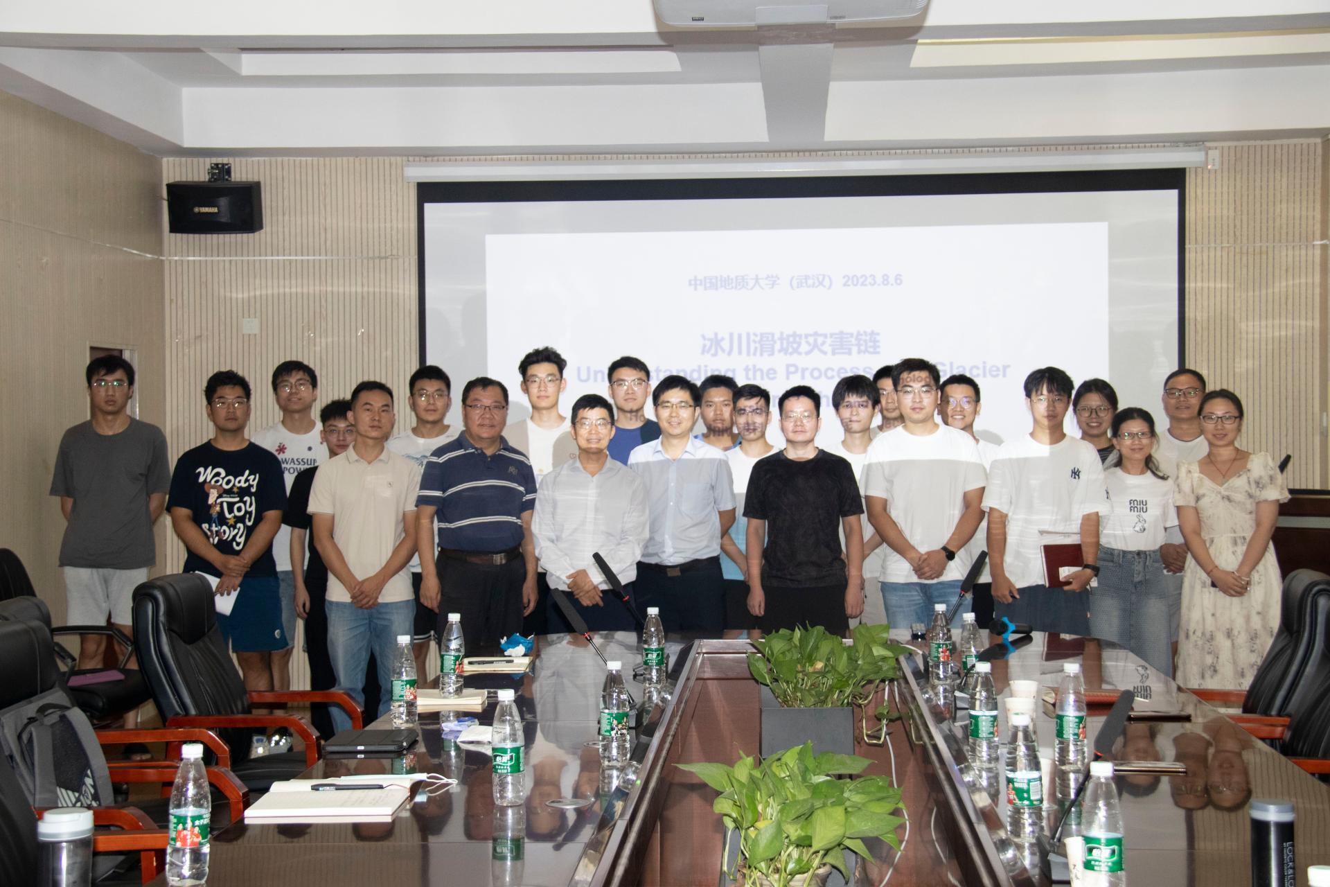 张利民教授作了题为“冰川滑坡灾害链”的学术报告,从物理力学的角度对冰川滑坡灾害链完整过程进行了科学阐释,包括冰川沉积物和岩体在冻融循环下的稳定性丧失、冰溶解过程中的土壤行为、质量流体动力学、碎屑冲击的动态响应以及滑坡灾害链中灾害类型的演变。