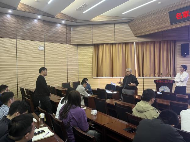 Timothy Collett教授对我校的诚挚邀请表示衷心感谢,并作了题为“Geologic controls on the formation and occurrence of highly concentrated gas hydrate reservoir systems and impact on gas hydrate production”的精彩报告。报告详细介绍了天然气水合物基础知识,对天然气水合物油气系统勘探情况进行了详细分析,以实例的形式系统总结了美国墨西哥湾、中国南海、日本南海海槽、韩国郁陵盆地和印度KG盆地的水合物勘探和开采情况,并对美国阿拉斯加冻土区前期和当前正在开展的水合物调查及试采情况进行了分享。最后,结合其丰富的现场调查研究经验,对未来水合物产业化开发面临的关键技术难题和研究方向进行了展望,并积极鼓励与会人员就报告内容开展交流和讨论。
