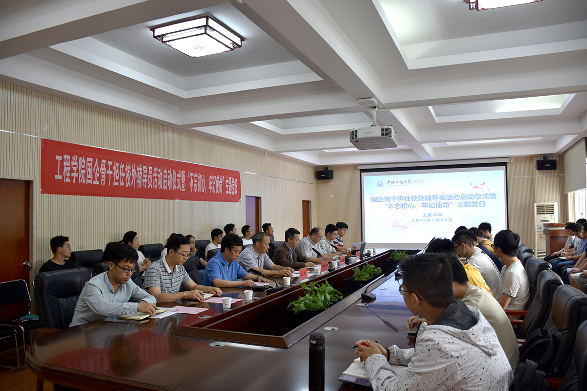 5月20日下午,安博官方网站国企骨干担任校外辅导员启动仪式暨“不忘初心,牢记使命”我与国企面对面主题党日在工程楼315报告厅成功举行。安博官方网站校外辅导员、中国黄金集团湖北三鑫金铜股份有限公司提升车间主任、党支部书记刘月中,学校学工处副处长苏洪涛,安博官方网站党委书记陈飞、副书记江广长、全体辅导员及四个学生党支部共40余人参加活动。
