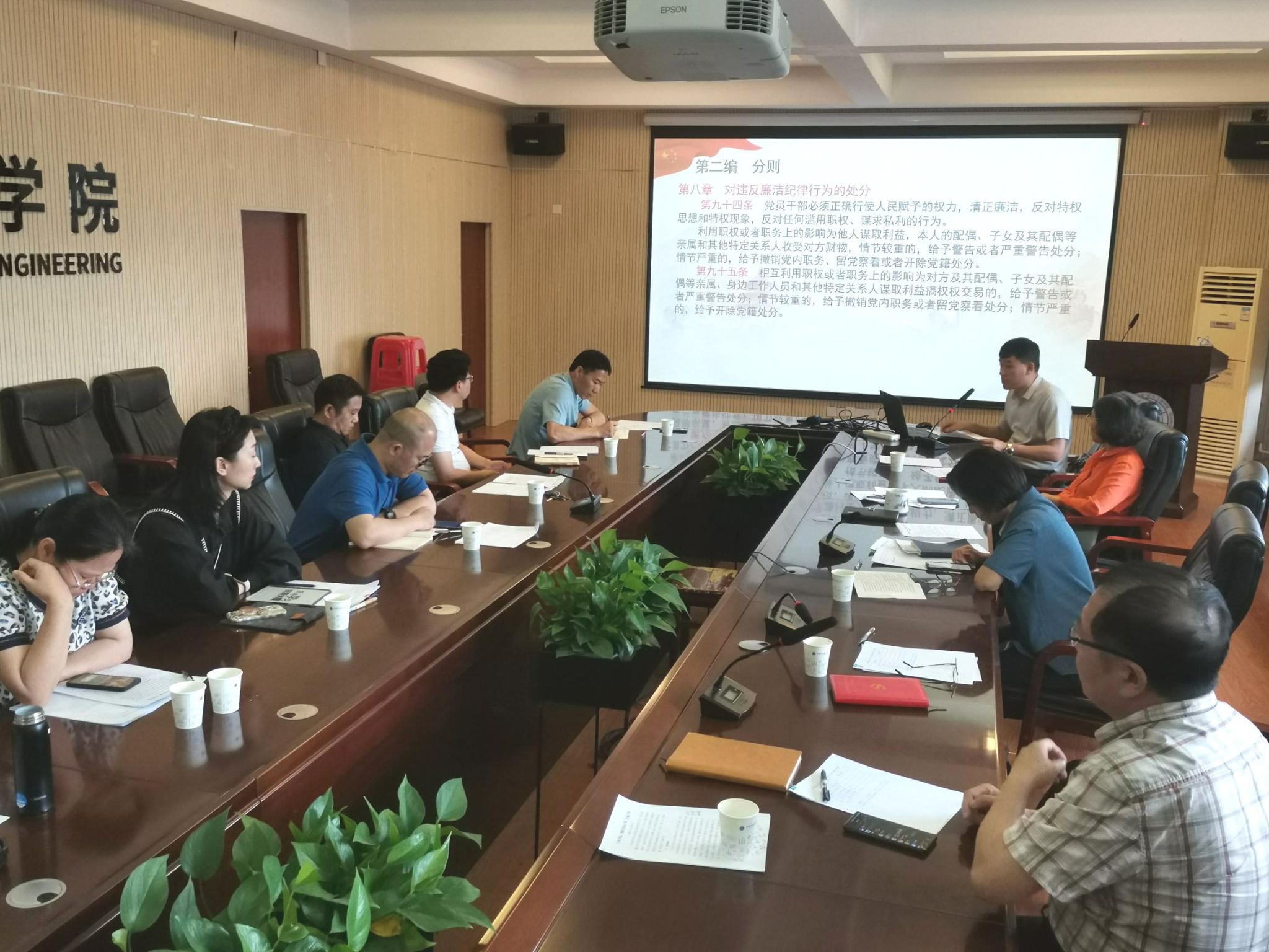 李红丽在会上强调,开展党纪学习教育是党中央落实新时代党的建设总要求,推动解决大党独有难题、健全全面从严治党体系,全面加强党的纪律建设的重要举措。学院各级党组织和全体师生党员要将抓好党纪学习教育作为贯穿全年的重要政治任务,做到:一是要深刻把握学习要求。坚持原原本本学、逐章逐条学、联系国家、行业、学校、学院、各系室和个人工作学习实际学,准确掌握“六项纪律”的实践要求,强化政治纪律和政治规矩,不断提高政治判断力、政治领悟力、政治执行力;二是要坚持学用结合。紧扣“纪律教育年”要求,把开展党纪学习教育与学院党建、作风建设、师德师风建设、“清廉地大”建设以及落实巡视巡察整改任务相结合,与推进落实办学治院的各项任务相结合,一融双高、久久为功;三是要强化“四则协同”。进一步加强对全面从严治党党委主体责任、纪委监督责任、党委书记“第一责任”和班子成员“一岗双责”的协同落实,要以开展党纪学习教育为契机,不断提升党性党风党纪水平,用党章党规党纪约束一言一行,知敬畏、存戒惧、守底线,为学院事业发展提供坚强的纪律保障。